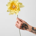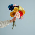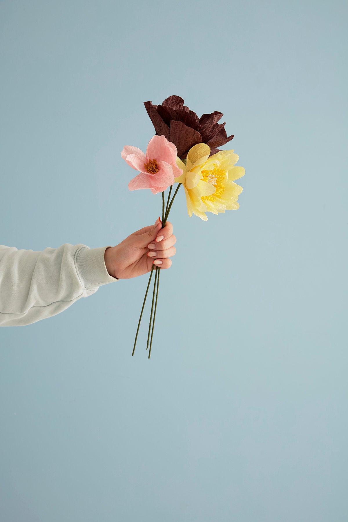 Papirblomsterne fra Studio About er håndlavede og nænsomt foldet sammen i små rør. Når du modtager din blomst, skal du selv folde bladene ud for at give den liv. Crepepapiret er let at forme, så du kan justere blomstens udseende og give den et personligt præg.