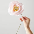 Papirblomsterne fra Studio About er håndlavede og nænsomt foldet sammen i små rør. Når du modtager din blomst, skal du selv folde bladene ud for at give den liv. Crepepapiret er let at forme, så du kan justere blomstens udseende og give den et personligt præg.