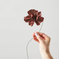 Denne blomst er lavet af gennemfarvet crepepapir og monteret på en lang, bøjelig grøn stilk. Stilken kan du let forme, så du kan få den form og længde du ønsker.