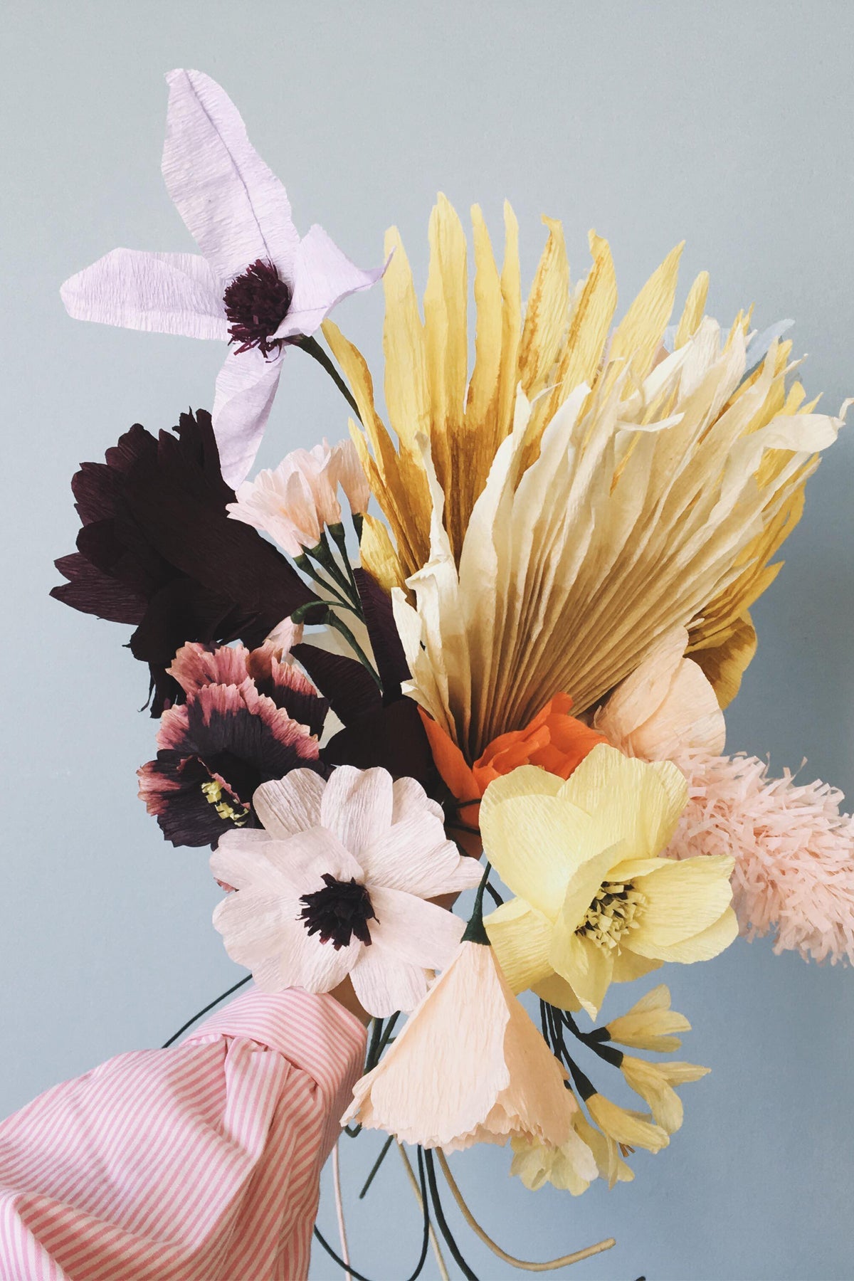 Papirblomsterne fra Studio About er håndlavede og nænsomt foldet sammen i små rør. Når du modtager din blomst, skal du selv folde bladene ud for at give den liv. Crepepapiret er let at forme, så du kan justere blomstens udseende og give den et personligt præg.