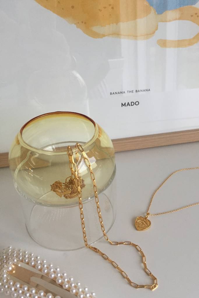 Her fås boblevasen i en smuk gul farve og med en åbning stor nok til, at vasen både kan bruges til blomster, sukkulenter og planter.