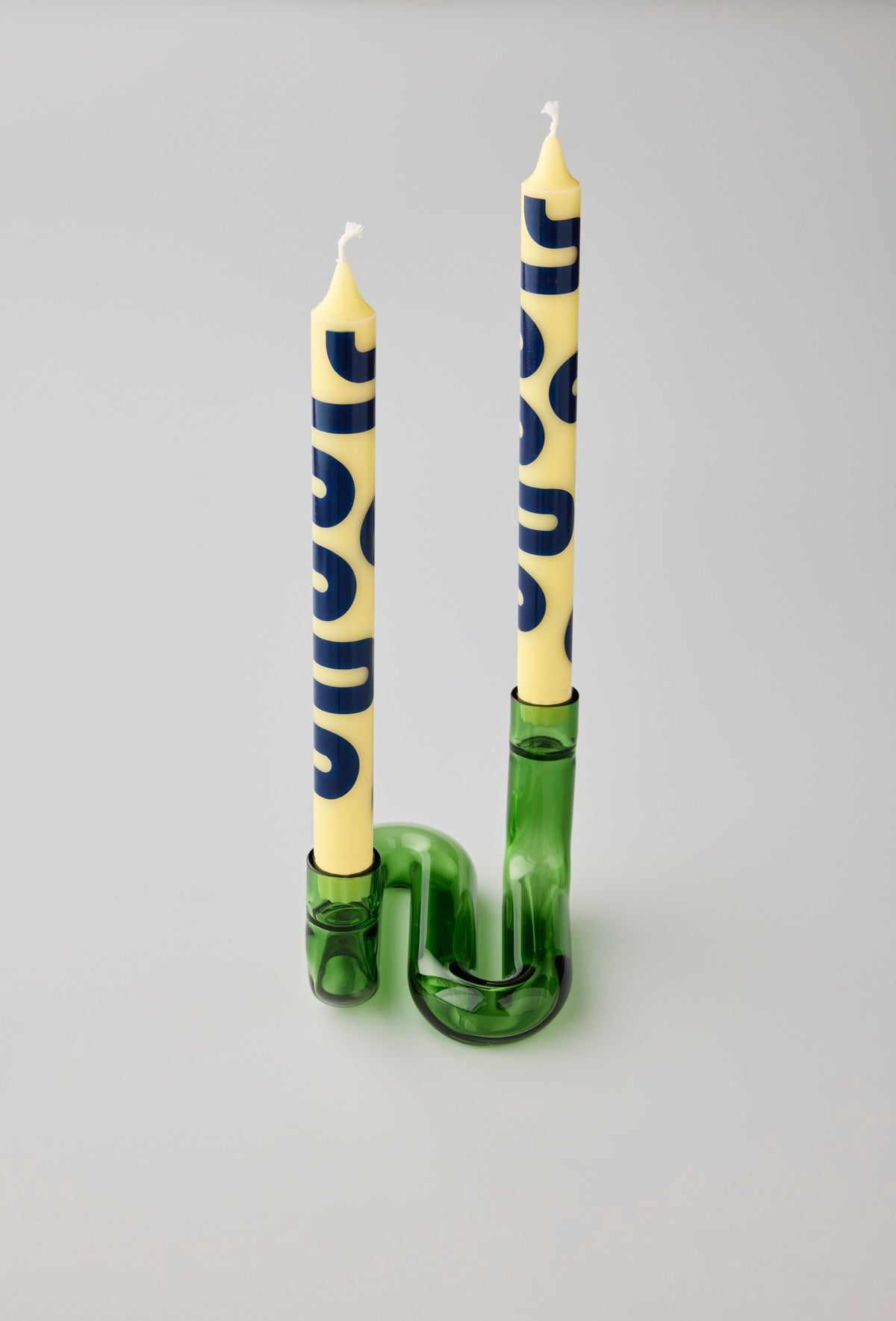 Lysestagen fåes her i Green, men kan også fåes i 3 andre farver, så du kan finde den perfekte til dit hjem. Den fåes både i transparent, blå og rosa. Denne grønne lysestage er både stilfuld og tidløs, da den bringer ro og harmoni i hjemmet.
