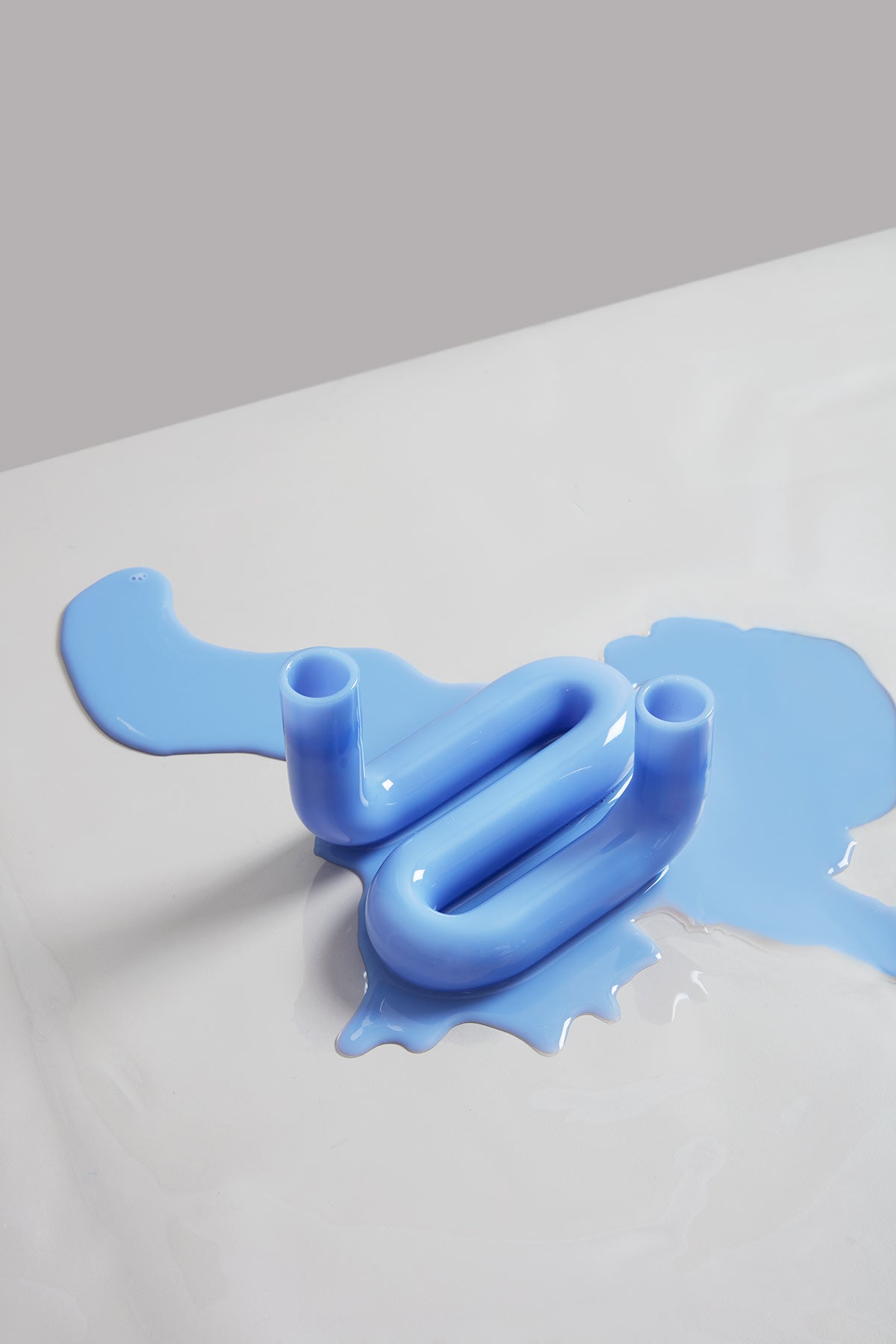 Lysestagen fåes her i Milk Blue, men kan også fåes i 3 andre farver, så du kan finde den perfekte til dit hjem. Den fåes både i transparent, rosa og grøn.