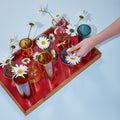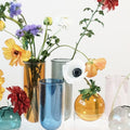 Vasen findes både i en høj og en lav udgave og falder naturligt ind i den nordiske indretning. Brug vaserne i en smuk borddækning eller som del af et lille stilleben. Den farvede glas kaster smukke skygger, når solen rammer og giver en helt særlig stemning. Hvis du er til det helt simple udtryk, der kræver minimal pasning, så lav et stilleben med vores smukke papirblomster kollektion i en reol eller i din vindueskam.