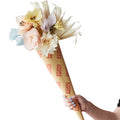 Papirblomsterne er samlet og pakket nænsomt ind i kraftigt papir. Du behøver derfor ikke bekymre dig om, at blomsterne beskadiges under transport. Den heldige modtager får en anderledes buket, og får lov til at folde de smukke blomster ud og give dem liv efter det udtryk de ønsker.