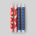 Vores signatur-kronelys fås nu i fire unikke sæt – hver med nøje sammensatte farvekombinationer og grafiske prints. Hver æske indeholder fire lys, alle med deres eget mønster, designet til at blive stylet sammen eller stå alene som små, farverige detaljer.