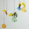 Her fås den elegante hængevase i en smuk gul farve. Vasen har en diameter på 8 cm og en åbning på 2 cm. Den kan hænge alene eller i et miks med andre størrelser og farver.