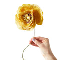 Papirblomsterne fra Studio About er håndlavede og nænsomt foldet sammen i små rør. Når du modtager din blomst, skal du selv folde bladene ud for at give den liv. Crepepapiret er let at forme, så du kan justere blomstens udseende og give den et personligt præg.
