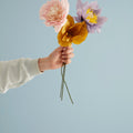 Papirblomsterne fra Studio About er håndlavede og nænsomt foldet sammen i små rør. Når du modtager din blomst, skal du selv folde bladene ud for at give den liv. Crepepapiret er let at forme, så du kan justere blomstens udseende og give den et personligt præg.