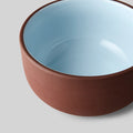 Den fineste skål fra keramikstellet CLAYWARE, hvor stellet er en del af TABLEWARE kollektionen. Keramikskålen er i farvekombinationen terracotta/light blue, hvor det ydre er uglaseret, så terracotta-leret fremstår råt, og indersiden er glaseret. Skålen er lavet af naturligt ler og kommer i et sæt med 2 stk.