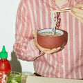 Herudover kan du også kombinere skålen med andet farvet keramik eller glas, så det skaber variation i borddækningen. Sæt eksempelvis en tallerken under skålen i en anden farve for at skabe dybde eller brug vores rosefarvede vandglas sammen med skålen for et feminint udtryk.