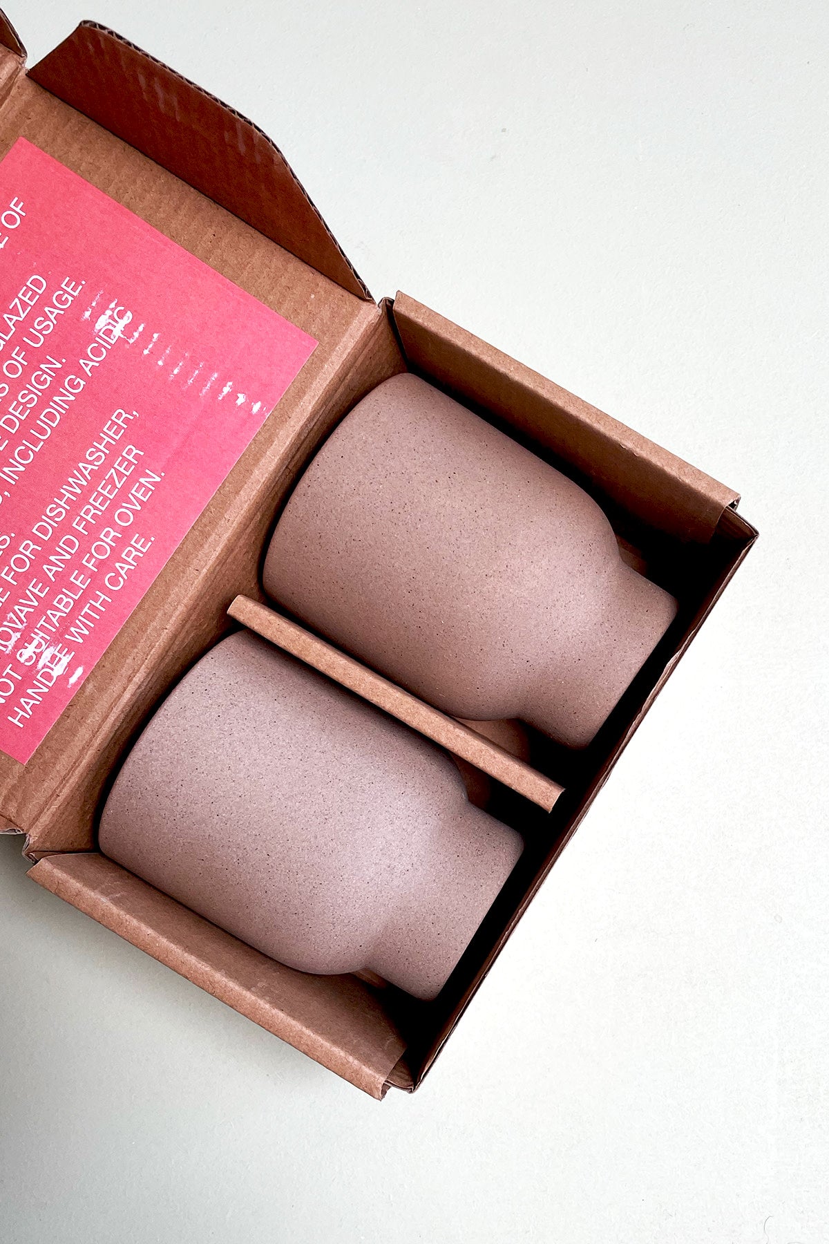 CLAYWARE, CUP, TALL, 2 PCS, SAND/GREY
