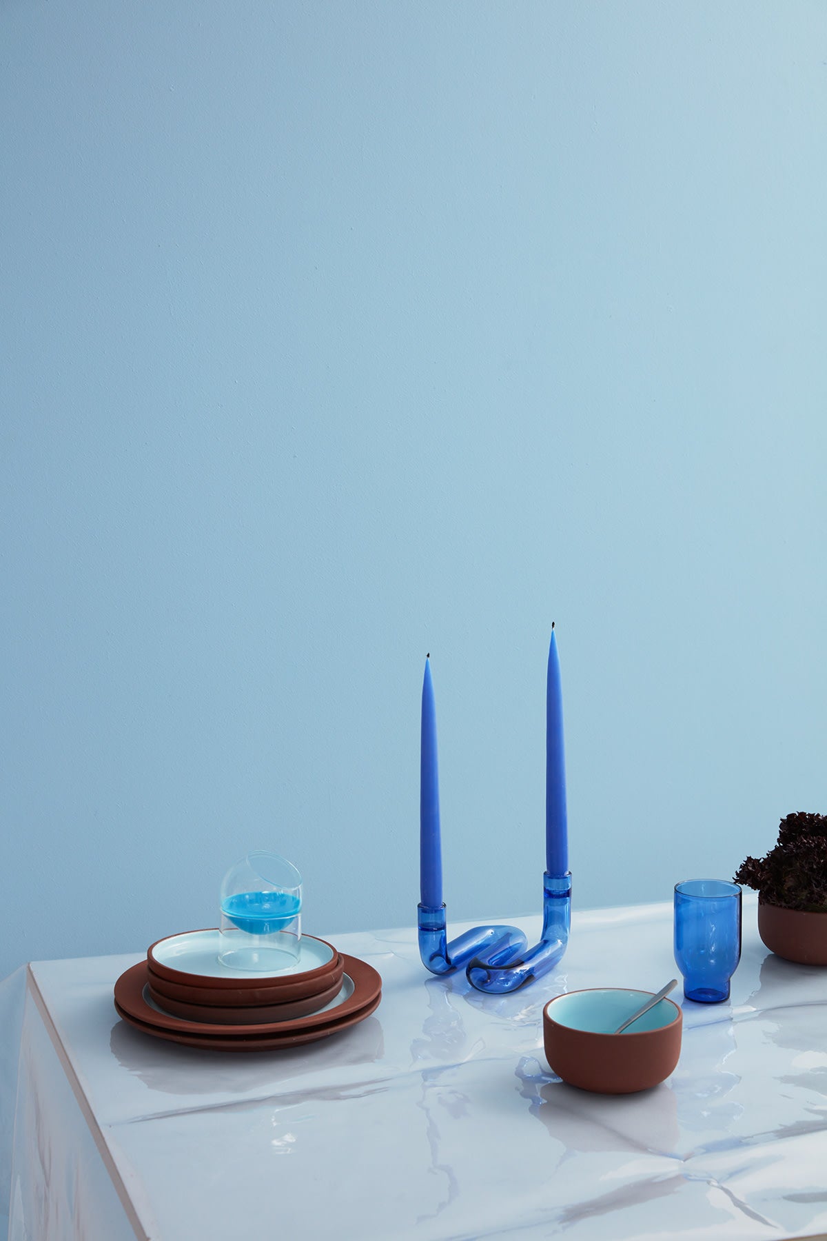 Tallerkenens delvise glasering giver en taktil og luksuriøs følelse og fornemmelsen af godt værk i hænderne. Designet er enkelt og tidløst med den store flade, der buer op i en bred kant, men farvekombinationen gør tallerkenen legende og inspirerende, hvilket gør at den både passer ind i et klassisk, stilrent hjem, samt en moderne og farverig indretning. Du kan kombinere tallerkenen med andre farvekombinationer fra CLAYWARE kollektionen eller sammensætte den med andre materialer som farvet glas for et lettere og kontrastfyldt udtryk. Du kan også lægge en papirblomst viklet rundt om en serviet som en servietring på tallerkenen for at gøre din borddækning endnu festligere.