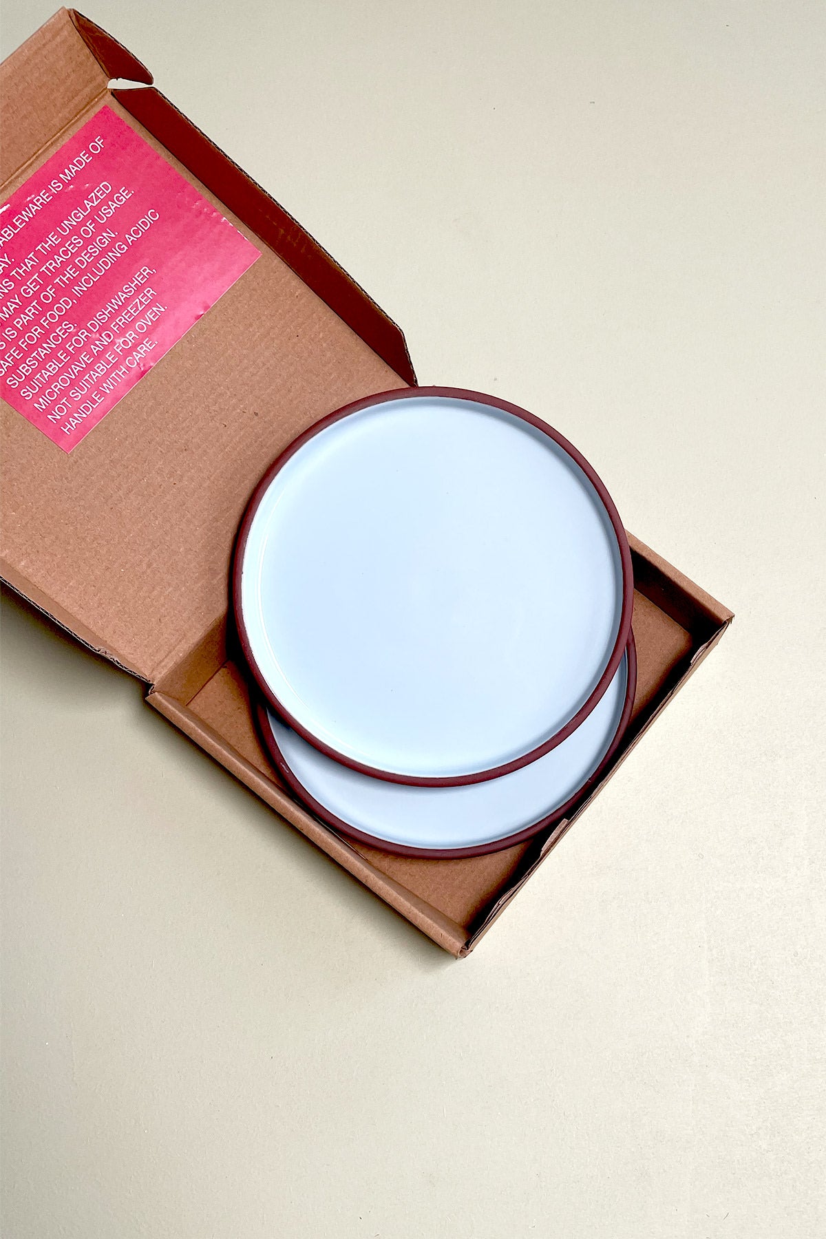 Keramiktallerkenen kan rengøres med varmt vand og sæbe eller kommes i opvaskemaskinen. Derudover tåler den mikrobølgeovn og fryser, men er ikke egnet til ovnen. Den kan stables for at spare plads. Keramikken er godkendt til fødevarer, herunder syrebaserede fødevarer. Keramiktallerkenen er lavet af terracotta, hvilket betyder at de uglaserede dele kan patinere med tiden. Dette er en del af designet og vil blot give tallerkenen karakter.