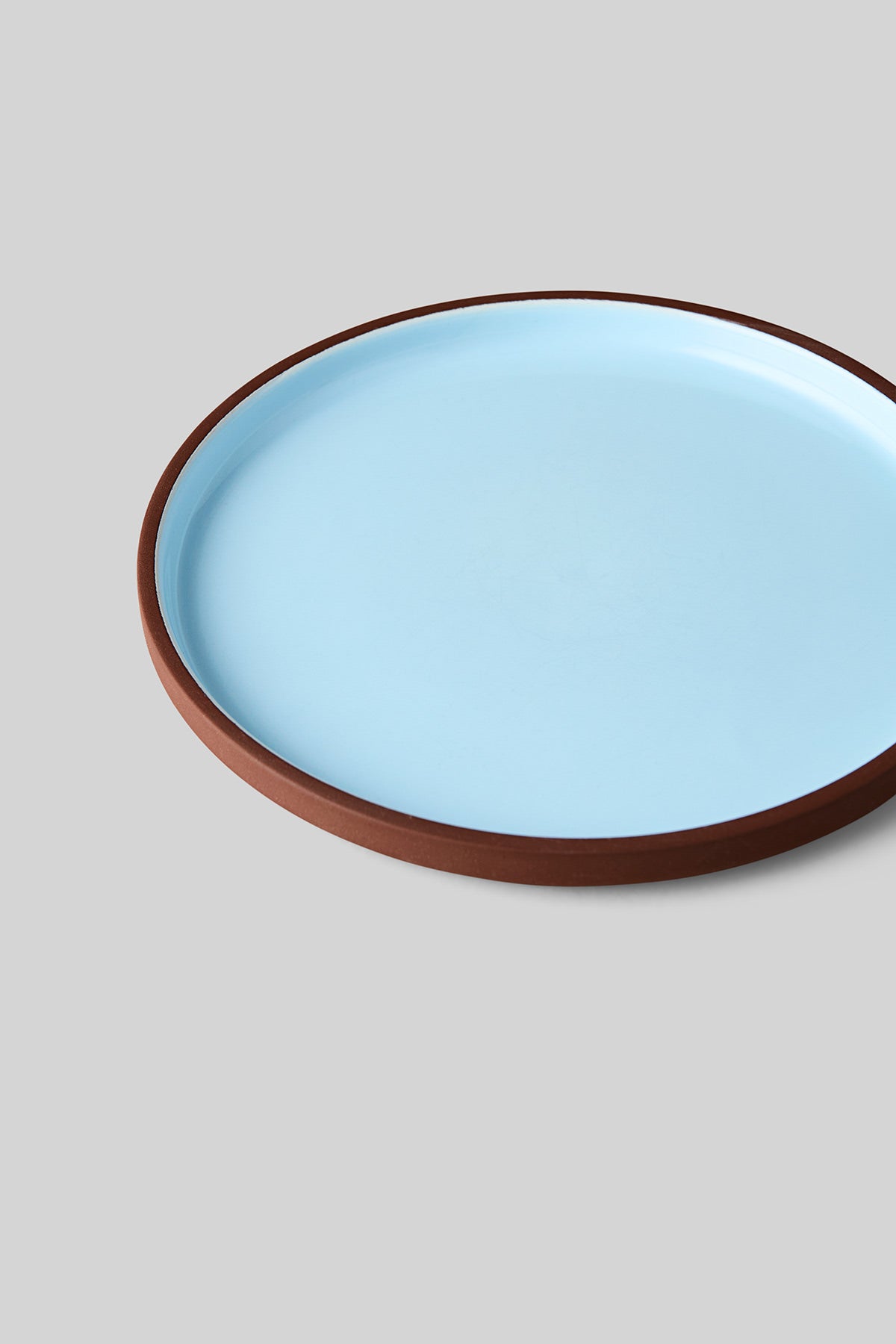 Flot frokosttallerken i farven TERRACOTTA/BLUE. Tallerkenen er en del af den nye TABLEWARE kollektion lavet i ler fra Studio About, og kommer i et sæt med 2 stk. Den er delvist glaseret således at det rå terracotta-ler er bevaret på ydersiden og det indre af tallerkenen er glaseret i en fin, lys dueblå farve, hvilket skaber et legende og kontrastfyldt udtryk.
