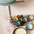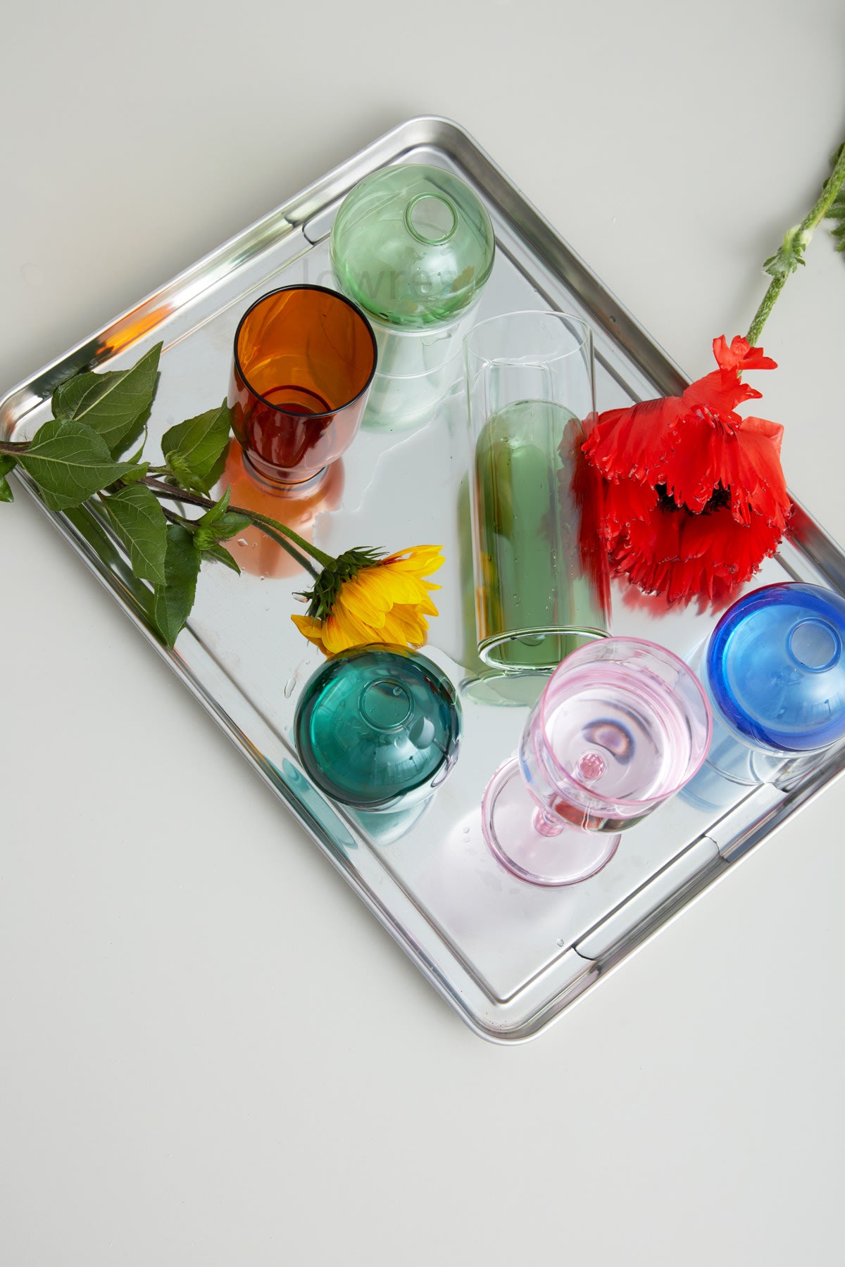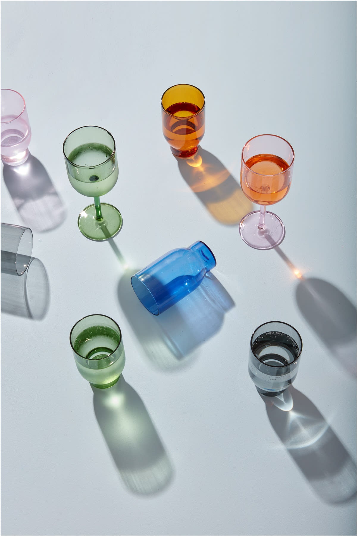 Drikkeglasset fås i flere forskellige farver: rose, smoke, blue og green