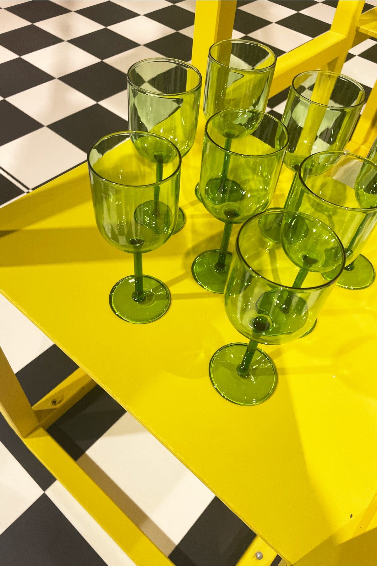 GLASSWARE, WINE GLASS, TALL, 2 PCS, GREEN