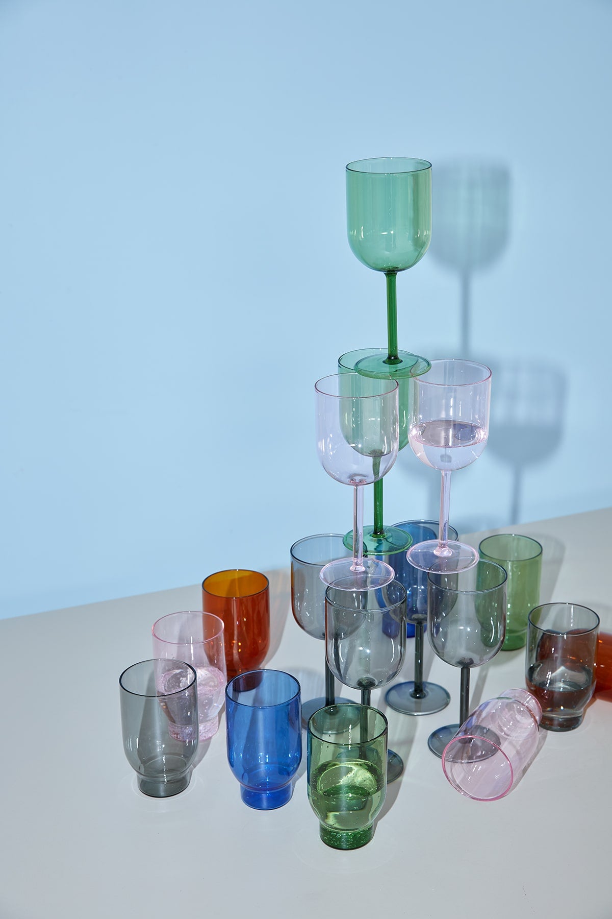 Smukt vinglas i stilfuldt design, her i farven grøn. Vinglasset er en del af Studio Abouts nye TABLEWARE serie som er designet af arkitekt Mikkel Lang Mikkelsen. Glasset har en klassisk form og den flaskegrønne farve giver et forfriskende pust til det typiske, gennemsigtige vinglas. Vinglasset kommer i et sæt med 2 stk. og er den perfekte indflytnings- og fødselsdagsgave.