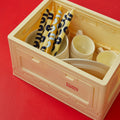 Med et praktisk låg holder den dine ting støvfrie, samtidig med at den er let at rengøre. Kassen er stabelbar, hvilket gør den ideel til pladsbesparende opbevaring i reoler, skabe eller på gulvet.