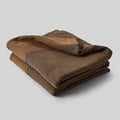 Det karakteristiske stripe weave-mønster fremhæver kontrasten mellem de to farver og tilfører designet en følelse af bevægelse og balance – en markant, men rolig detalje, der gør plaiden til et centralt element i soveværelset.