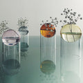STANDING FLOWER BUBBLE kollektionen fra Studio About er en serie af mundblæste vaser i gennemfarvet glas. Vaserne består af en transparent cylinderformet fod og en farvet boble, der udgør selve vasen.