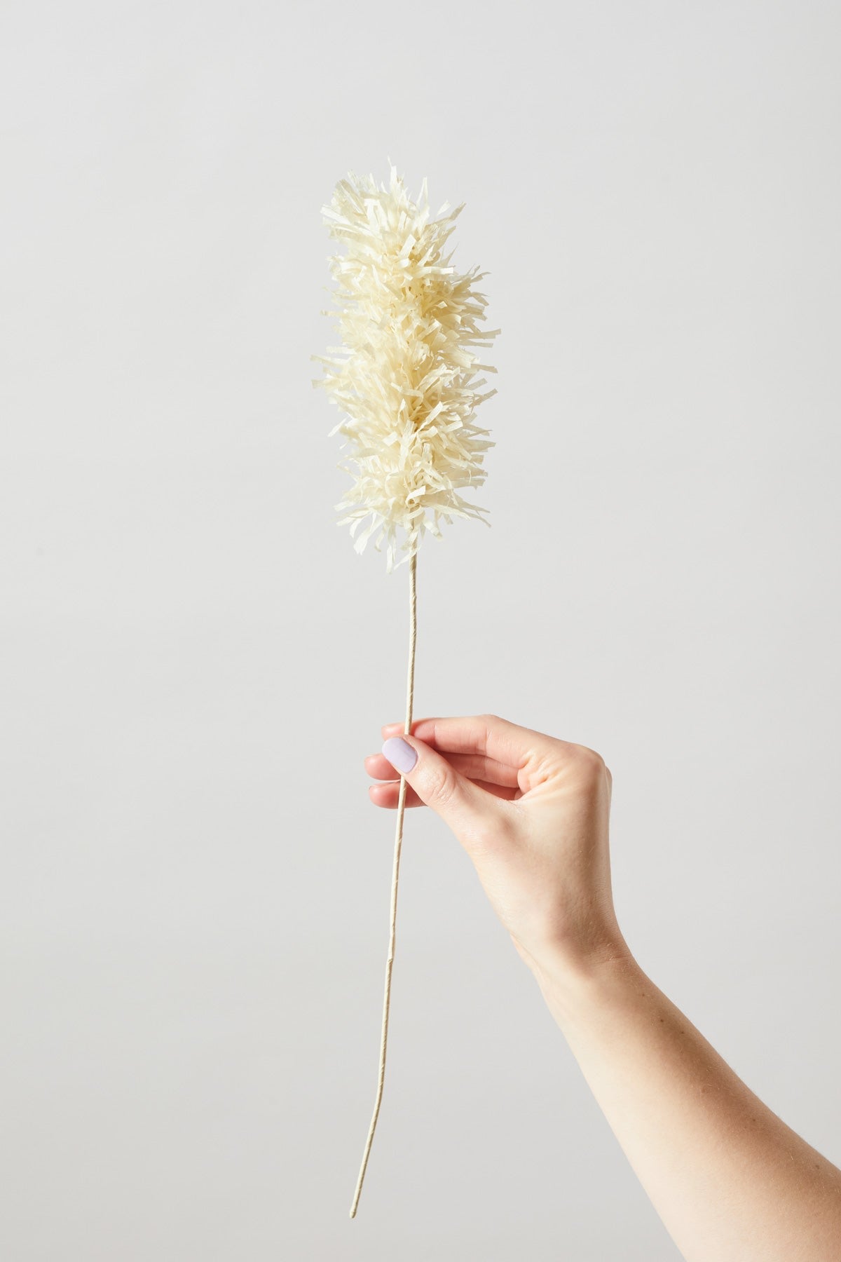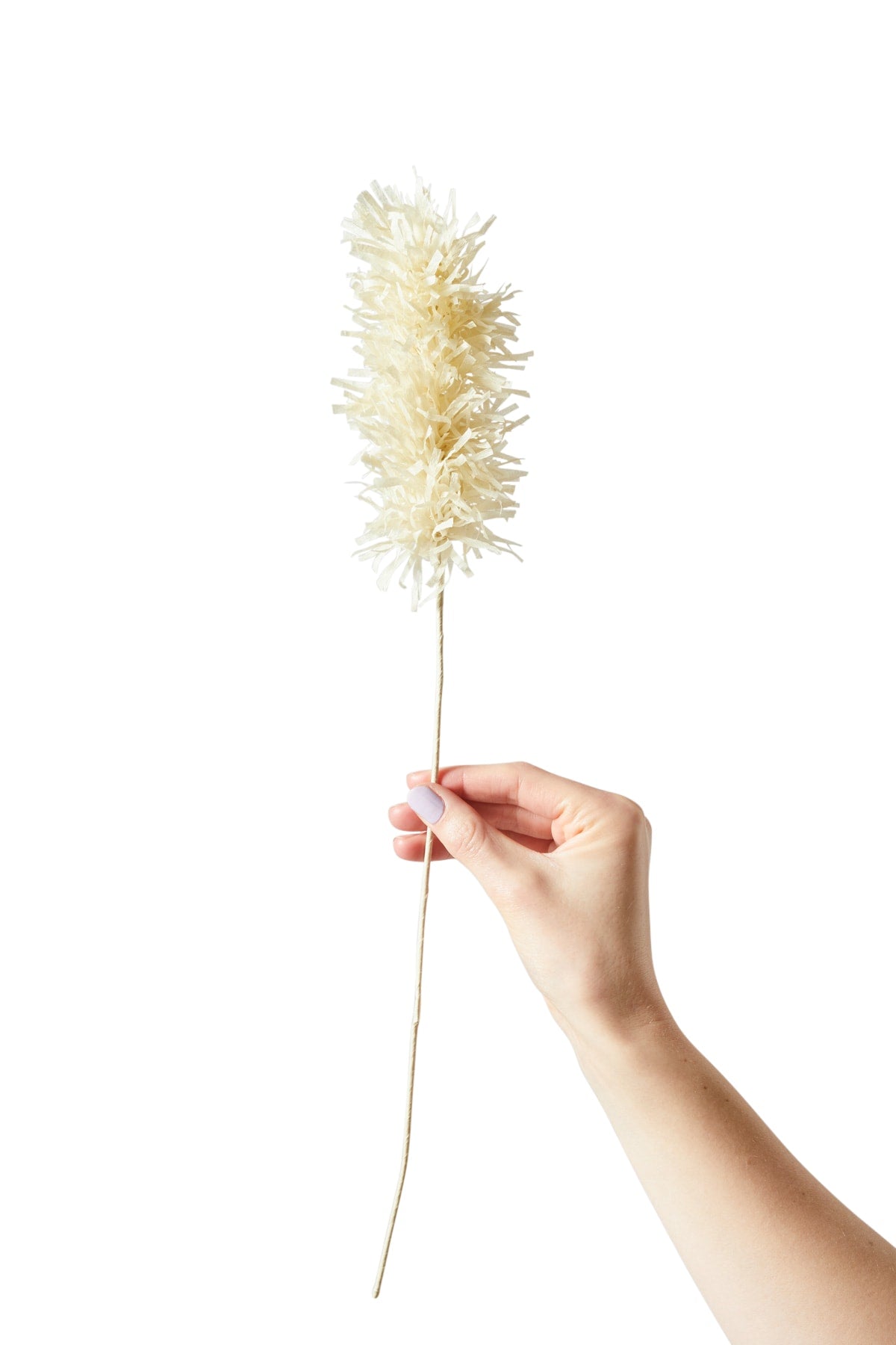 Hver blomst er fremstillet af gennemfarvet crepepapir og monteret på en lang, fleksibel stilk, som nemt kan formes efter behov. Den smukke Pampas-papirblomst er en unik græsart og er tilgængelig i farverne sand og rosa, hvilket giver mulighed for at tilpasse din indretning præcis som ønsket.