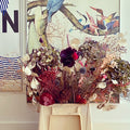 Du kan også kombinere dine papirblomster med tørrede blomster i alverdens farver, det vil give et stærkt udtryk og er super som værtindegave eller bare til pynt hjemme i en travl hverdag. Prøv eksempelvis at kombinere de smukke crepeblomster med nogle tørrede græsser.