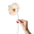 Denne blomst er lavet af gennemfarvet crepepapir og monteret på en lang, bøjelig grøn stilk. Stilken kan du let forme, så du kan få den form og længde du ønsker. Denne variant er i farven nude men fåes også i orange, lilla og rød.